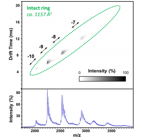 電噴霧離子淌質譜能夠在MS和MS/MS模式下準確分析化合物的質量和真實同位素分布,能提供真實的分子式信息,離子淌度室位于碰撞室部位,可以獲得MS及MS/MS淌度分離能力,并可獲得CCS值。它是一種用于化學、材料學和生物制藥的重要分析儀器,能夠通過測量樣品組份的質量電荷比,檢測樣品組份的分子量。并且可以基于不同結構化合物碰撞截面積(CCS)值的不同與漂移時間的不同,分離不同大小、形狀的化合物,增加了結構類似物、異構體的定性能力。